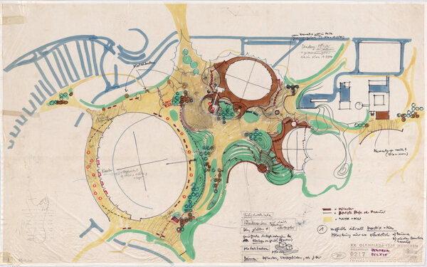 Zeichnung der olympischen Anlagen von Carlo Weber. (Foto: Architekturmuseum der TUM)