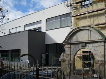 Der Neubau erhielt einen separaten Eingang mit einem Behindertenaufzug in alle Geschosse des Neubaus mit entsprechender Anbindung an den Bestand.