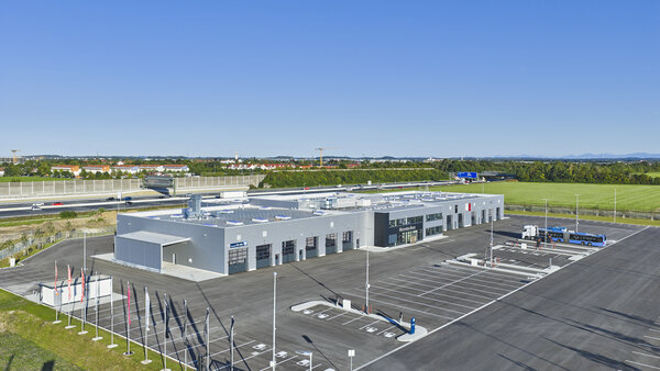 Das neue Mercedes-Benz Nutzfahrzeugzentrum in München Aschheim. (Foto: Daimler Truck AG)