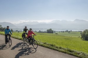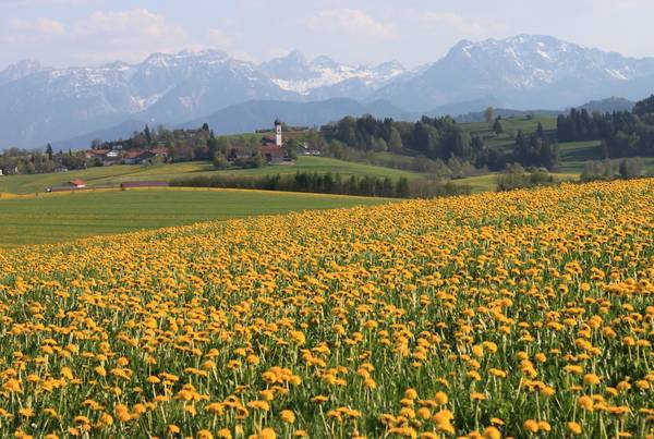 Wie eine weite Naturloge liegt das Südliche Allgäu vor den ganz Großen der bayerischen Berge. Idyllische Dörfer und Weiler schmiegen sich in die sanft geschwungene, wiesenreiche Hügellandschaft, in der, wie bereits erwähnt, die meisten Seen im gesamten Allgäu liegen. Allerorts eröffnet sich ein phantastischer Blick auf die majestätischen Gipfelketten, weshalb der Landstrich „Königsloge der Alpen“ genannt wird, auch, weil Bayerns Märchenkönig Ludwig II. die Region mit seinen Königsschlössern dekorierte. Gleichwohl Schloss Neuschwanstein die berühmteste Sehenswürdigkeit ist, bietet das Südliche Allgäu einen faszinierenden wie erholsamen Erlebnisreichtum aus Natur, Familienangeboten, Kultur und Sport.