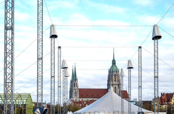 Der Aufbau fürs Tollwood Winterfestival läuft auf Hochtouren