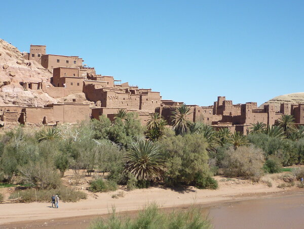 Schließlich wird die Umgebung noch karger, der Boden sandiger und endlich ist man am Ziel der Fahrt angekommen, einem Ort wie aus einem Wüstentraum mit dem exotischen Namen Aït-Ben-Haddou. Um in das alte Dorf zu gelangen, muss man nur den kleinen Fluss auf einer schmalen Brücke überqueren. Die Wüstenstadt ist als Ksar aufgebaut, eine Wohnburg aus Stampflehm und das Ziel aller Besucher, denn es ist eine der bekanntesten Sehenswürdigkeiten Marokkos.