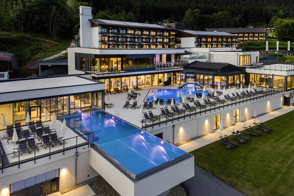 Im neuen 6500 Quadratmeter großen „5 Elemente Asien SPA und Lebensstil“ wacht auf zwei Etagen der Lotus, als Symbol der Reinheit und des Neubeginns. Zwischen dampfendem Infinitypool, goldenen Paradiesvögeln und weichen Kissen lässt es sich hier herrlich relaxen, während der Blick durch die großen Glasfronten über das herrliche Panorama des Bayerischen Waldes mit Arber, Osser und Kaitersberg schweift.