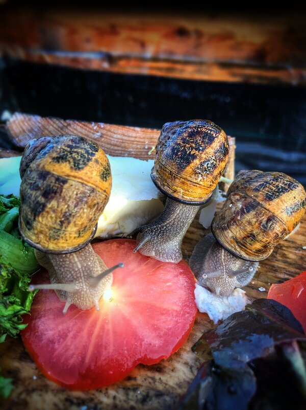 Futtertisch Tomate für die Schnecken der Sorte Helix Aspersa Maxima. (Foto: Wilder Kaiser)