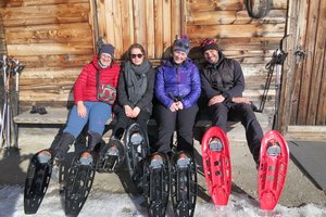 Zuerst ist es noch ziemlich ungewohnt, mit den angeschnallten Schneeschuhen das Laufen zu versuchen. Doch die Plastikteller haben große Vorteile. Im eisigen, harten Untergrund helfen die scharfen Metallkrallen und geben Halt. Man rutscht nicht und verliert nicht den Boden unter den Füßen. Besonders bergauf geht es problemlos und im Tiefschnee tragen sie, sodass man über die