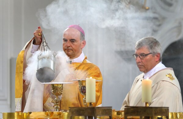 In Geldnöten: Der Würzburger Bischof Franz Jung (links). (Foto: dpa/Karl-Josef Hildenbrand)