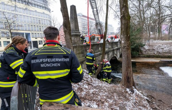 Einsatz an der Münchner Eisbachwelle: Die Feuerwehr hat eine illegal eingesetzte Rampe entfernt, die zu Weihnachten dafür gesorgt hatte, dass die seit Oktober verschwundene Welle im Eisbach im Englischen Garten zeitweise wieder da war.