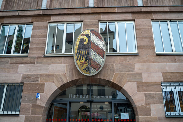 Stadtwappen an der Fassade des Nürnberger Rathauses. (Foto: dpa)