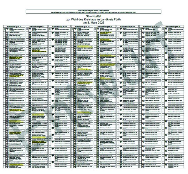 Bei 14 Bewerberinnen und Bewerbern fehlen auf den bereits gedruckten Wahlzetteln zur anstehenden Kreistagswahl im Landkreis Fürth die Namen ihrer Wohnorte komplett. Auch bei einzelnen anderen Kandidaten sind die Angaben unvollständig. Trotzdem hat die Wahlbehörde im Fürther Landratsamt den Gemeinden erlaubt, die mangelhaften Wahlunterlagen zu versenden.