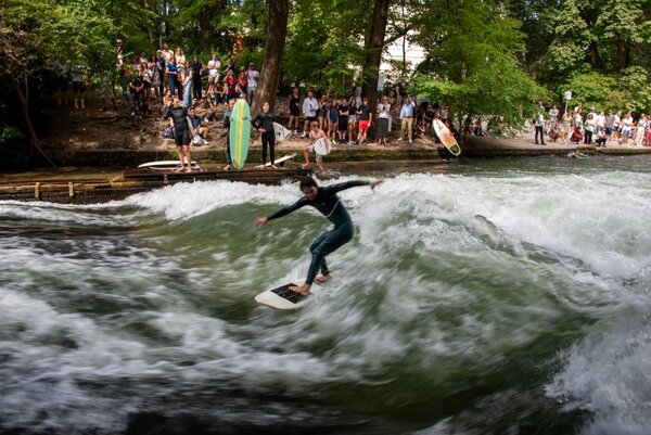 Dass Surferinnen und Surfer in München vor den Augen von Touristen aus aller Welt legal ihrem Hobby nachgehen können, haben sie einem Mittagessen zu verdanken. Und einem ungewöhnlichen Tausch
