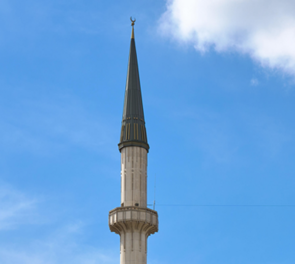 KI-generiertes Symbolbild eines Minaretts einer Moschee. (Fotomontage: dpa)