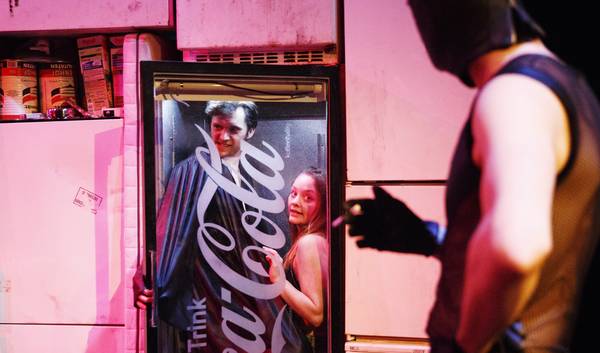 „Spezi – da ist Saft drin“, steht als Werbespruch auf einem der Kühlgeräte. Und phasenweise gilt das auch für diese Inszenierung von Jean Genets Puff-Groteske Der Balkon – die aber mit dreieinhalb Stunden überflüssig lang geriet und darum auch allzu viele Durststrecken aufweist.