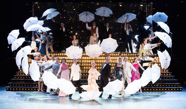 Aber solche Bögen schlägt Intendant Josef E. Köpplinger (Co-Regie führte Ricarda Regina Ludigkeit, sie organisierte auch die Choreografie) in seiner Inszenierung nicht. Das garantiert jugendfreie Techtelmechtel zwischen Star Don Lockwood und dem Revuemädel Kathy Selden (Nadine Zeintl), das es als Ersatzstimme der Diva letztlich auch zum Leinwandstar bringt, bleibt beinahe ehrfürchtig nostalgisch in den Zwanzigerjahren stecken (der Titelsong stammt von 1929). Auch die Musik bleibt zu getragen – da ist an Nummern wie Moses Supposes die Elektro-Swing-Welle vorbeigegangen. Die hätte dem Ganzen vielleicht einen interessanten Kick geben können. (Karin Dütsch)