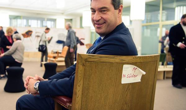 Heimatminister Markus Söder (CSU) eröffnete die Ausstellung heute und steuerte ein weiteres Exponat bei: seinen alten Landtagsplenarstuhl. Der Stuhl sei seit der feierlichen Eröffnung des Bayerischen Landtags 1949 bis zum Umbau 2004 Zeuge zahlreicher historischer Debatten gewesen, sagte Söder. (dpa)
