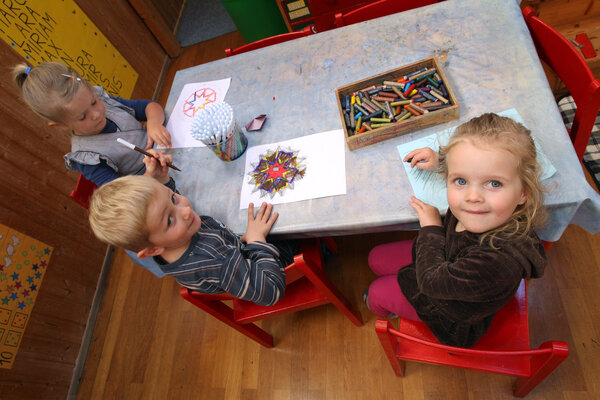 Kinder malen im Kindergarten "Heilige Familie" in Kaufbeuren. (Foto: dpa/Karl-Josef Hildenbrand)