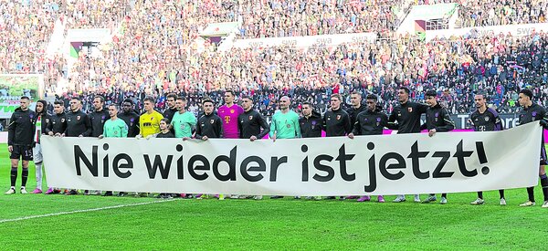Der FC Bayern München, hier bei einer Gedenkaktion mit Spielern des FC Augsburg, befasst sich mit seiner Vergangenheit. (Foto: dpa/Eibner-Pressefoto, Heike Feiner)
