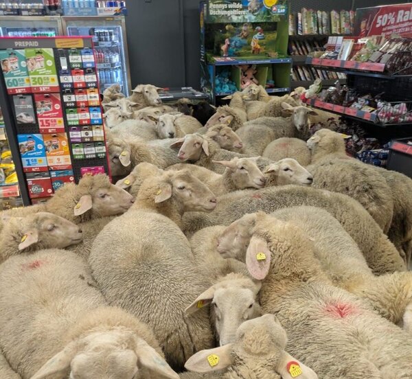Auch so sei es aber nicht leicht gewesen, die Schafe nach draußen zu bekommen: "Wir haben versucht, sie rauszuschieben, aber das ging nicht." Erst als eine Mitarbeiterin laut auf die Kasse geklatscht habe, hätten sich die Tiere erschreckt und seien durch die Schiebetür zurück auf den Parkplatz gesprungen.