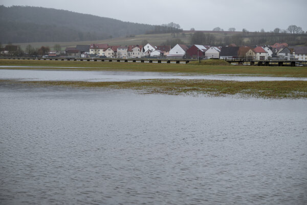 Durch Regen und Tauwetter sind Wiesen und Felder überschwemmt. (Foto: dpa)