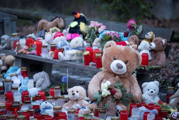 Plüschtiere, Blumen und Kerzen wurden im Januar im Park Schöntal in Aschaffenburg zum Gedenken der Opfer des tödlichen Messerangriffs niedergelegt. Nun beginnt das Sicherungsverfahren gegen den mutmaßlichen Täter. (Foto: dpa/epd-bild/Tim Wegner)