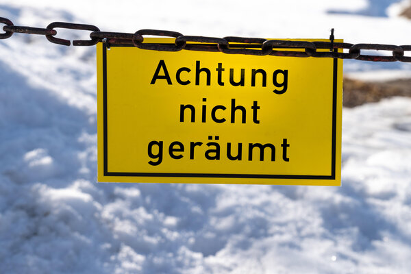 Ein gelbes Schild warnt mit "Achtung nicht geräumt" vor ungeräumten Wegen im Schnee. Wegen Glätte und Eis besteht erhöhte Rutsch- und Unfallgefahr, da der Winterdienst hier nicht ausgeführt wurde. (Fotomontage, dpa)