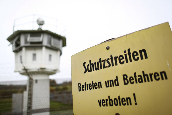 Ein Warnschild im Deutsch-Deutschen Museum in Mödlareuth (Bayern) vor einem Wachturm. (Foto: dpa)