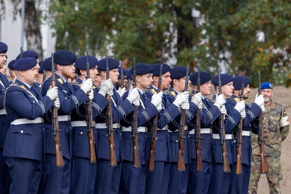 Bundeswehrsoldaten in Paradeuniform. Werden sich genug Freiwillige für den neuen Wehrdienst melden? (Foto: dpa/Eibner-Pressefoto/Ardan Füßmann)