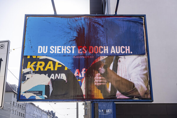 Beschädigte Wahlplakate und Gewalt: Politisch motivierte Straftaten nehmen weiter zu. (Foto: dpa/Arnulf Hettrich)