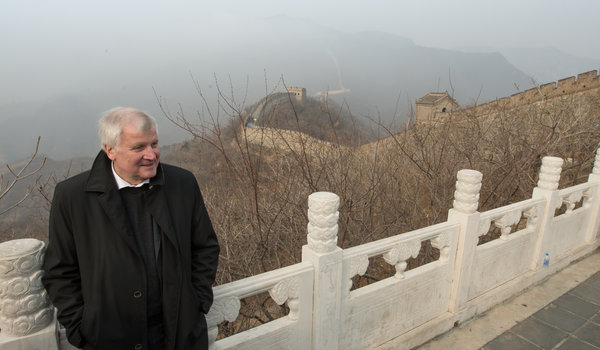 Horst Seehofer im November 2014 vor der Großen Mauer. Auch in China hatte er heikle Themen weitgehend ausgeklammert. (Foto: Peter Kneffel/dpa)