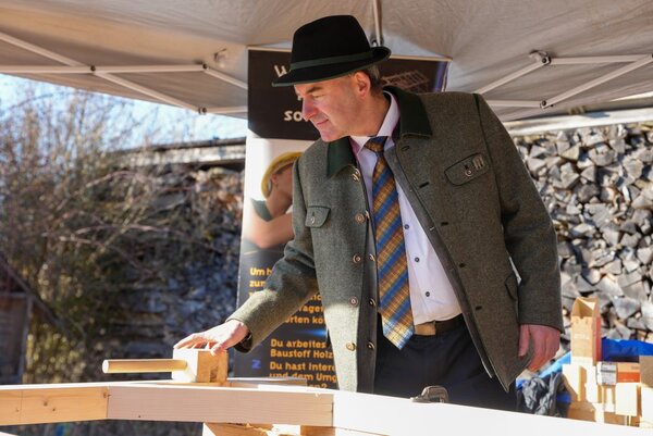 Aiwanger: Es geht immer um den konkreten Anwendungsfall und ganz sicher nicht darum, einen Baustoff gegen den anderen auszuspielen. Vielmehr ist wichtig für die Baubranche, möglichst alle Materialien optimal für den jeweiligen Zweck einzusetzen, immer mehr auch hybrid. Denn wir reden hier nicht über Romantik, sondern über handfeste Bauprojekte. Im mehrgeschossigen Bau kann Holz ganz oder teilweise eingesetzt werden – sowohl im klassischen Ein- und Mehrfamilienhausbau, als auch bei Bürogebäuden und kommunalen Zweckbauten wie Kindergärten oder Schulen. Der Baustoff Holz ist leicht, stabil und tragfähig. Damit kann man auch mal teuren Stahl aus Übersee ersetzen. Und auch bei den Dämmstoffen auf Erdölbasis besitzen Holzfasern Vorteile gegenüber Styropor.