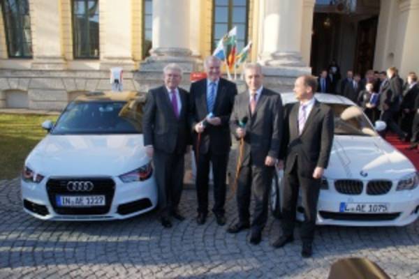 „Mit Bayern und Sachsen gehen zwei Premiumländer zusammen mit Spitzenunternehmen Hand in Hand den Weg für Elektromobilität in Stadt und Land“, betonen Seehofer und sein sächsischer Amtskollege. Bis zum Jahr 2020 wollen beide Länder 250 000 Elektroautos auf die Straße bringen. Und das bayerische Kabinett springt dabei in die Vorreiterrolle. „Wir haben letzte Woche eine Beschaffungsinitative für Elektrofahrzeuge für die bayerische Staatsregierung verabschiedet“, betont Bayerns Wirtschaftsminister Martin Zeil (FDP).